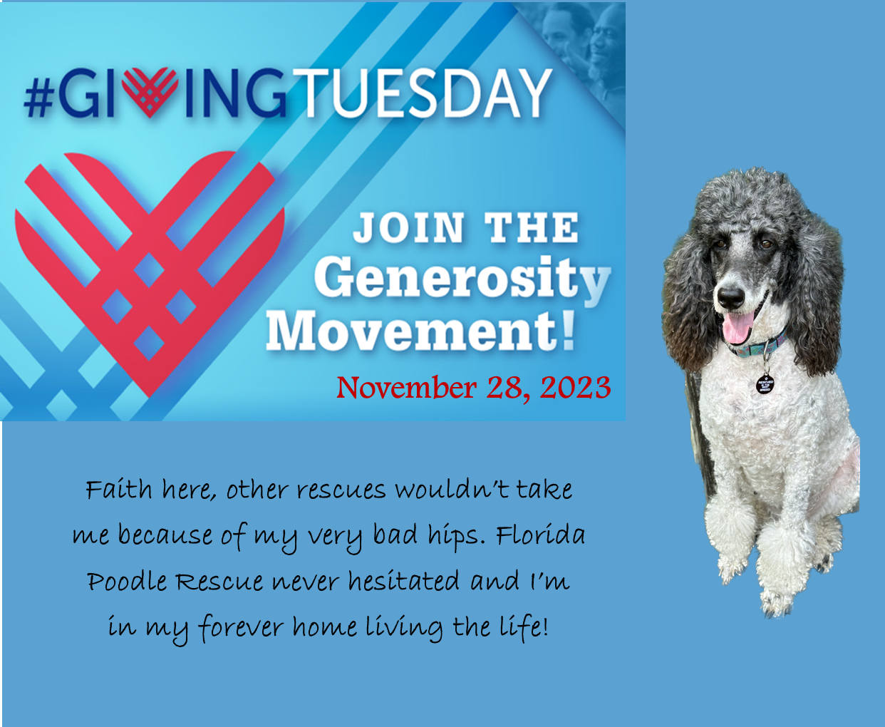 Florida Poodle Rescue invites you to Join the Generosity Movement!   Our goal for #GivingTuesday 2023 is to raise $35,000 for our rescue. Thank you for all of your support!